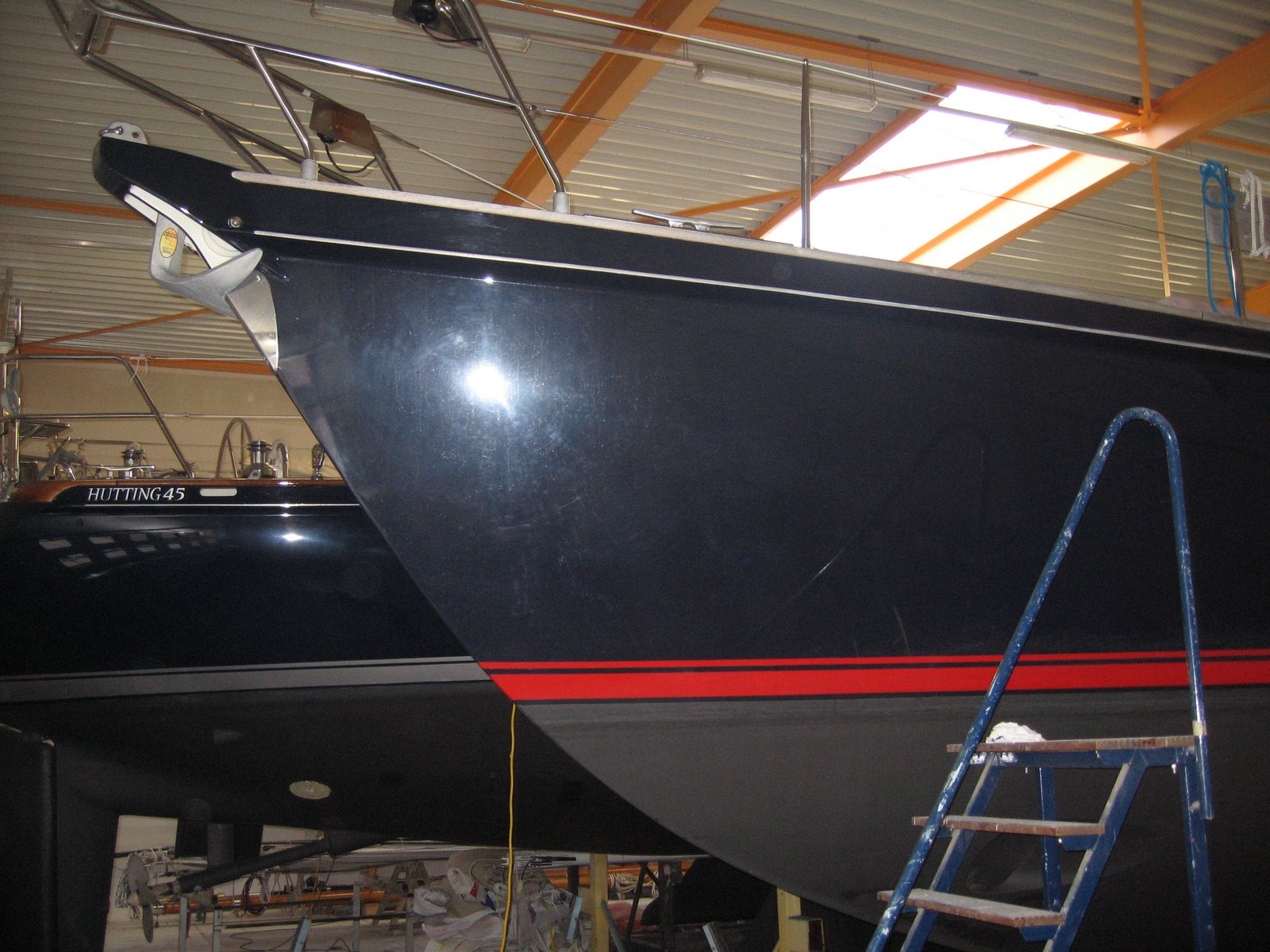 Nu ligt Nika nog lekker in de loods. Het houtwerk is gelakt, de romp gepoetst, het beslag weer gemonteerd. Alleen de antifouling moet er nog op.
