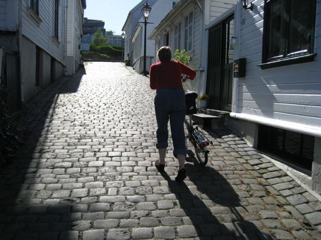 Wat we erg aardig vonden was het oude stadsdeel, aan de westzijde van de oude haven. De vrijwel volledig intacte houten, wit geschilderde en goed onderhouden huizen, geven een goed beeld van het oude Noorwegen in de steden. Veel houten huizen in de steden zijn ooit door brand verwoest.
