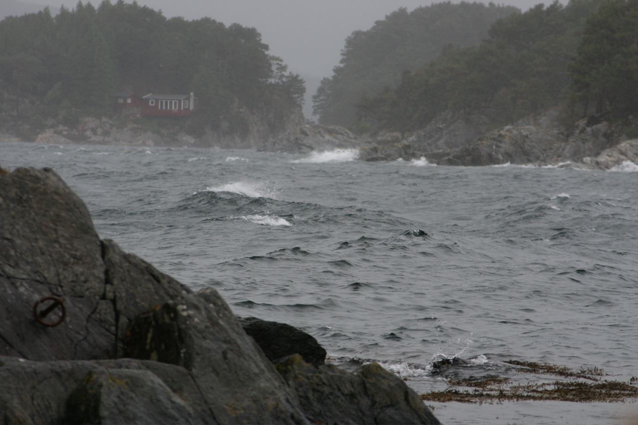 De wind voorspelling voor de kustwateren ten noorden van Utsira ( een eilandje voor de kust van Noorwegen, dat bij schippers bekend is als één van de Noordzee districten die altijd bij het weerbericht wordt genoemd) gaf voor vandaag een wind waarschuwing van windkracht 8-9, met uitschieters naar 10. Omdat we tussen de eilanden lagen valt dat wel mee, de windkracht is toch gauw 1-2 punten lager dan op volle zee.
