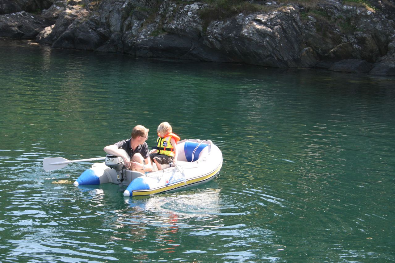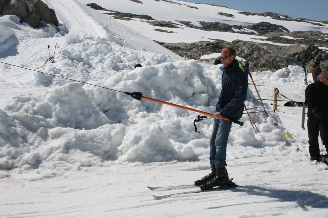 We hebben veel ondernomen, aangelegd in een prachtig beschutte baai, waar de rubberboot eindelijk zijn drijf-capaciteiten mocht etaleren, tot groot plezier van onze 4 jarige kleinzoon. We hadden een auto gehuurd, waarmee we een tocht maakten door het Hardangerfjord, naar Jondal, waar een zomerskicentrum is op de gletsjer. Natuurlijk om even te skieën. Ewout genoot zichtbaar van de geboden kans.