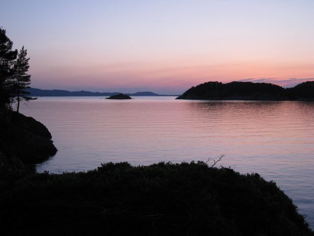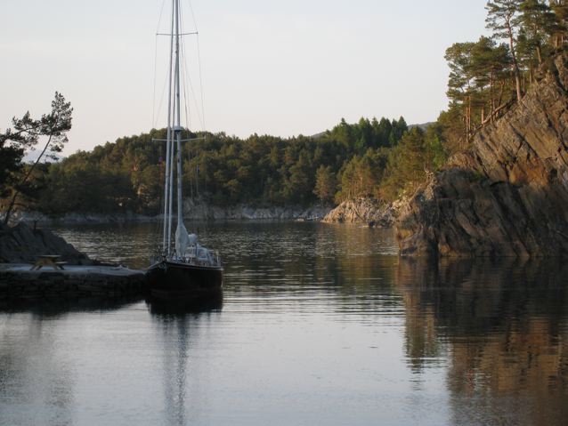 Eigenlijk bevalt het wel, zo’n beetje rondkeutelen tussen de eilanden, niet te veel wind , af en toe een stukje zeilen en op mooie plekjes overnachten. De Noren zijn nog steeds niet massaal op het water. Een enkele welgestelde neemt ’s middags vrij om met zijn gezin een eindje te gaan varen met hun motorboot om dan ergens in een mooi baaitje een paar uur te vertoeven met een pilsje in de hand en een worstje uit de pan.