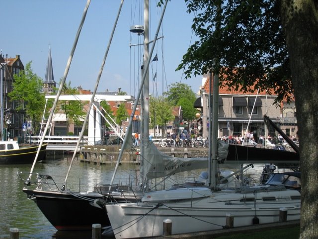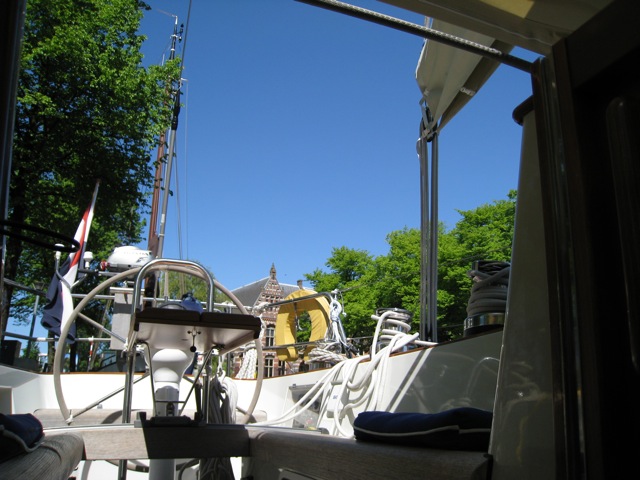 De wind is nog uit het zuidoosten. In de loop van de dag gaat het van uit het zuidwesten in de onweersbuien spoken zeggen ze op alle geraadpleegde stations. We liggen hier goed, langszij aan een stevige steiger met de kop naar het zuidwesten, dus laat maar komen die windstoten en onweersbuien.