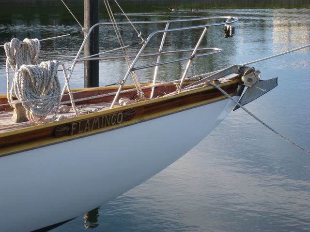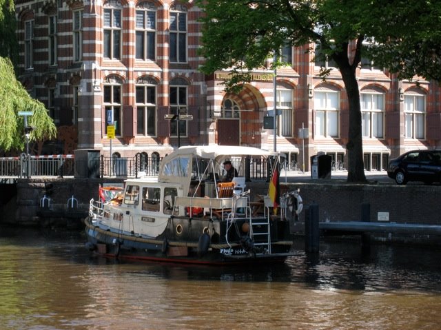 Aan lange lijnen vanuit het achterschip om twee palen en de boeg voorzien van een trapje naar de steiger liggen we bij de BKYC, de Engelse Yachtclub vlak bij Kiel. Aan de andere kant van de steiger ligt een prachtig langgerekt jacht met een sterk overhangende spiegel dat bij navraag het zeiljacht van Himmler was, die man die in de tweede wereld-oorlog de rechterhand van Hitler was. De Engelsen hebben na de oorlog de Nazi Yachtclub over-genomen en er een Britsche enclave van gemaakt. De jachten hebben ze ingepikt en één ervan, de Flamingo, hebben ze gerestaureerd en intact gehouden tot de dag van vandaag. In het clubgebouw verwonderden we ons al over een foto met een aantal heren op dit schip met een wapperende nazivlag. Toch wat vreemd in een Britse Yachtclub. Tot voor enkele jaren mochten Duitsers hier niet komen. Nu is de Yachtclub open voor alle gasten en very British werden we met voornaam voluit en alle gegevens die we normaal niet hoeven te geven vereeuwigd in het grote boek. De volgende ochtend hing naast de Engelse en Duitse vlag ook de Nederlandse vlag als teken van onze aanwezigheid. Niet veel mensen weten van deze mogelijkheid om hier een ligplaats voor de nacht te krijgen. Slechts 1 mijl ten noorden van de sluis helemaal achter in een inham is meestal wel een plekje vrij in de haven die nu vooral dienst doet als trainingscentrum voor militairen. Het is een prima stressoefening om landrot-soldaten een dagje mee te nemen op een zeilschip, het liefst bij windkracht 6 of meer.