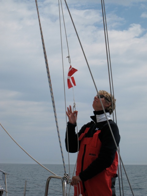 Het weer lijkt goed te worden, morgen maken we de oversteek naar Denemarken, een tocht van ongeveer 70 mijl( 126 km). Overigens meende ik weer een bruinvis te zien, het was volgens de havenmeester een aalscholver die onderdook. Even later zag ik hem bovenkomen, inderdaad een aalscholver. Een mens ziet wat hij zien wil.