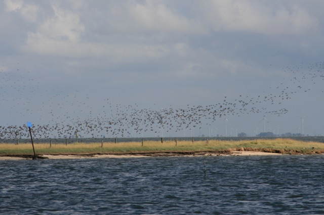 Spiekeroog vanuit ons plekje aan de kade met een boel vogeltjes