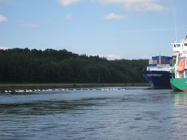 zwanen op het Kielerkanaal, oversteken met een boel lef