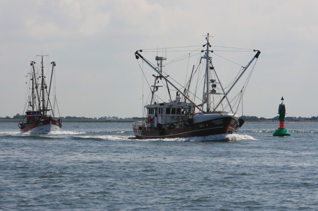 de vissersvloot van Neuharlingersiel vaart uit