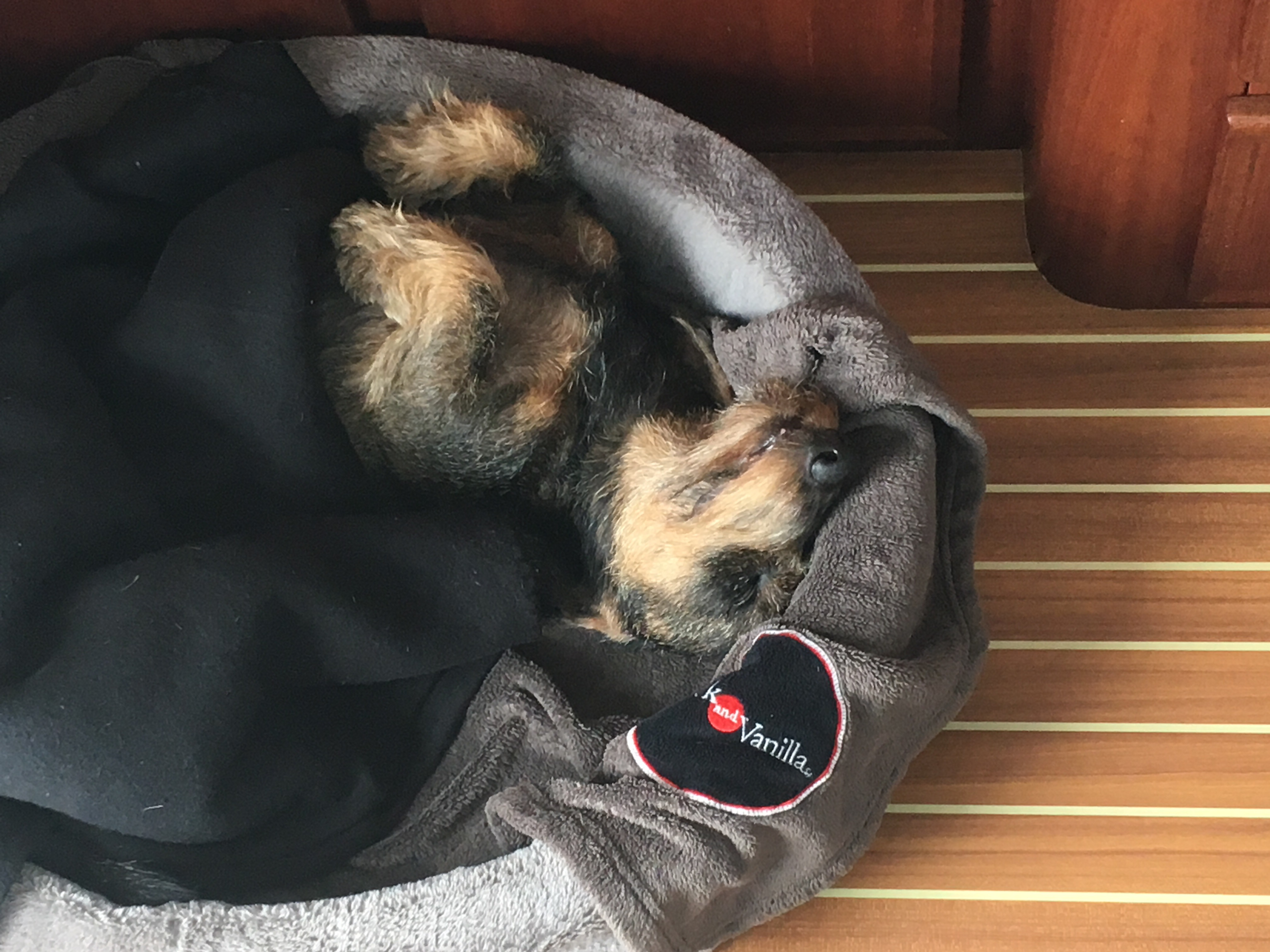 Die laatste zin was misschien wat optimistisch gesteld. De regen gutst vandaag naar beneden alsof je onder een waterval staat. De patrijspoortraampjes kunnen het niet aan en lekken op het fornuis en naast de boekenkast. Bo uitlaten voor zijn ochtendplas en -poep leek het meest op het waden door een beek tijdens een stortbui. Van boven en van onderen nat. Bo vond het niks. Zelfs het anders zo uitgebreid lezen van het nieuws door alles te besnuffelen bleef achterwege. Doorweekt van de regen en tevergeefs het water uit zijn vacht schuddend, kijkt hij me smekend aan om terug te gaan. Onverbiddelijk wijs ik hem erop dat er eerst nog een grote boodschap geproduceerd moet worden. Na wat heen en weer gedrentel komt die alsnog.