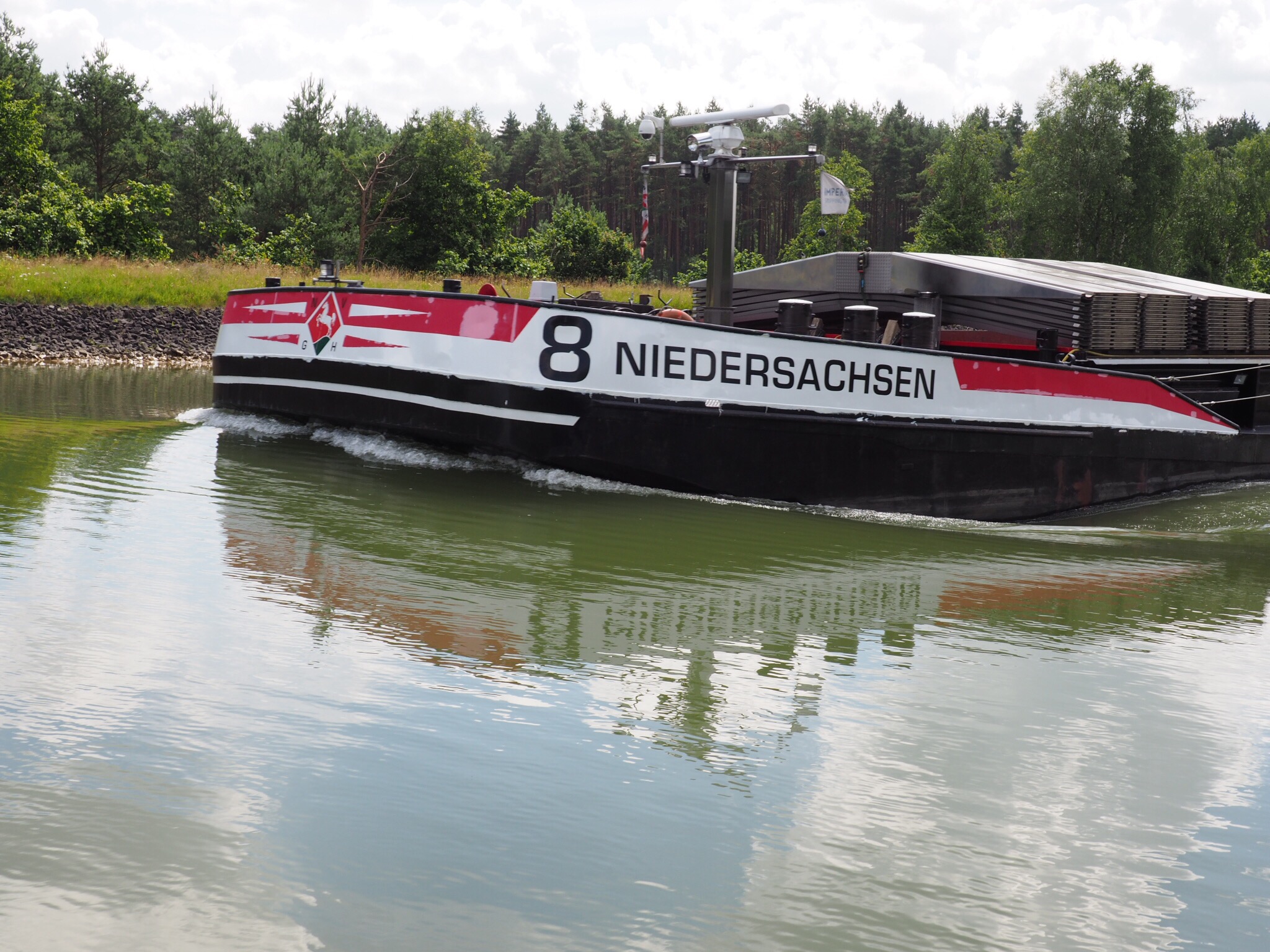 Terwijl het wereldgebeuren zich volstrekt onvoorspelbaar ontrolt glijden wij zacht zoemend over een rimpelloos Dortmund-Emskanaal. De ‘Alter Ego’, een oud geklonken vrachtschip met een tjoek-tjoek motor die afschuwelijk walmde en stonk, lieten we, wijs geworden, een kilometer of wat voor ons varen. Het schip passeren was geen optie omdat de sluizen de beroepsvaart altijd voor laat gaan. Dus sukkelden we met een snelheid van 7-8 km per uur achter hem aan. Kanaal varen is soms geduldig varen, vooral als er veel beroepsvaart voor je uit vaart. De sluizen op dit kanaal zijn gemaakt voor schepen tot 80-85 meter. Bij de grotere sluizen passen er maximaal twee van die jongens in een sluis. Dan blijft er geen ruimte over voor twee ‘sportboten’ van 12 meter. De meeste mazzel heb je als er geen grote schepen dezelfde kant op gaan en veel schepen je tegemoet varen, in dit geval omhoog in de sluis,‘zur Berg’. In de lege sluis wordt je dan snel naar beneden geschut omdat er aan de dalkant een volgend groot schip staat te trappelen om de ‘berg’ te beklimmen, 4-7 meter omhoog. Vandaag hadden we die mazzel. De Alter Ego was in alle vroegte vertrokken. Hij had gisteren, vlak na de laatste sluis, net als wij, een walletje opgezocht om te overnachten. Gelukkig aan de overkant met de wind uit de goede hoek. Zijn rokende generator bleef de hele nacht draaien op waarschijnlijk dezelfde stinkende, walmende brandstof als die van zijn motor. Het leek wel een varend destructiebedrijf. Niet al te vroeg uit de veren heeft zo zijn voordelen als sportboot-vaargast. Vrij baan en niet achtervolgd, voeren we met een kleine 6 knopen van sluis tot sluis. 12 sluizen te gaan van het kruispunt Mittellandkanal-Dortmund-Emskanal naar de zeesluis bij Herbrum.