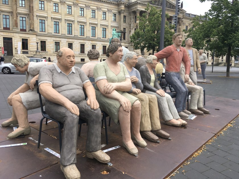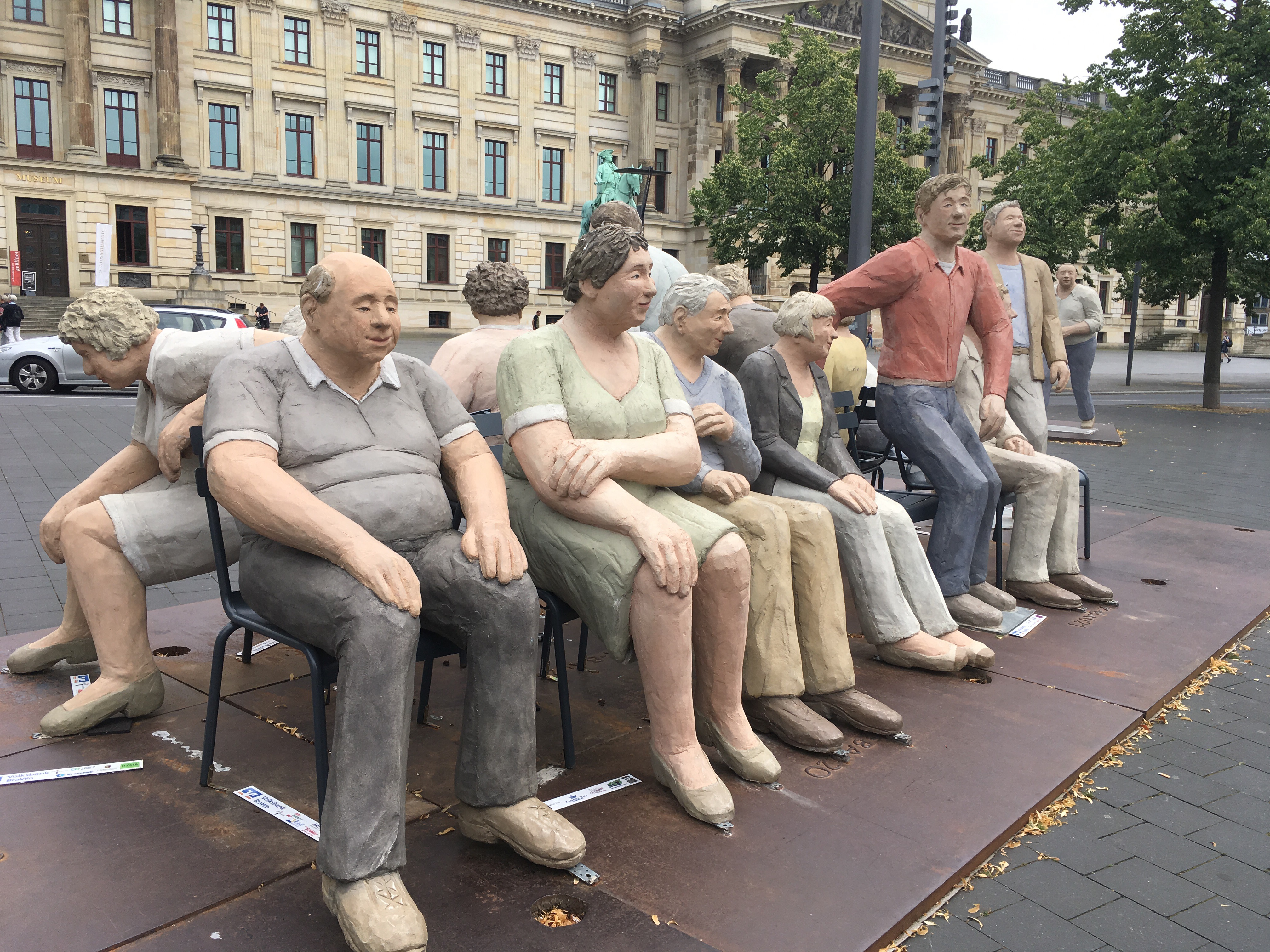 Bakken met hemelwater worden over de Nine Marit uitgestort. Alsof ze nog niet schoon genoeg is na de regen van vannacht. Op de Wetterwarnung App van de Deutsche Wetter Dienst(mooie App) waarschuwen ze voor nog meer heftige regenbuien met windstoten. We zitten dan wel droog, we moeten door de wapperende ruitenwissers en de regengordijnen ons best doen om nog iets van het kanaal te zien. Drie dagen geleden vonden we een mooi haventje iets voorbij Braunschweig. Een privé haven die ook plaats heeft voor gasten. Bortfeld is een meertje, ontstaan door afgraving van kieselstenen, een oud grindgat. Er omheen zijn huizen gebouwd die voor het grootste deel energie-neutraal zijn. Via aardwarmte worden de woningen verwarmd. De toegang tot de haven en het meertje verloopt via een ‘Hollandse ophaalbrug’ die op afstand bediend wordt door de havenmeester. Eerst bellen, dan voorzichtig tussen de flankerende meerpalen de brug door die volgens ons niet veel breder is dan 5.30 meter. Net genoeg voor ons schip met de ballen aan beide kant buitenboord. De ontvangst is meer dan hartelijk. Omdat we in de middag nog naar het Herzog Anton museum in Braunschweig wilden gaan, stelde de Havenmeester voor om ons naar de bushalte 3 km verderop te brengen. Hij gaf ons meteen maar 4 buskaartjes van een strippenkaart en een uitdraai van de vertrektijden van de bus. Hij zou ons ook weer ophalen aan het eind van de middag als we hem bij vertrek uit Braunschweig zouden bellen.De megalomane kunstverzamelaar Herzog Anton Ulrich heeft het hele museum bij elkaar verzameld. Ten koste van het Hertogdom en haar ingezetenen, die door het moeten betalen van hoge belastingen de hobby van de hertog moesten bekostigen. Aan het eind van zijn leven, begin 1700 was het geld op, met als bijkomende ‘schade’ dat er nu in dit museum een paar Rembrandt‘s, een Vermeer, een Ferdinand Bol en vele Hollandse, Italiaanse en Franse Meesters hangen. Bovendien is er een gigantische collectie aan 17e eeuwse beelden, porselein, meubilair, en Chinese-Japanse kunst te zien. Het grote door Rembrandt geschilderde doek van een eenvoudige familie, hing onlangs nog op de overzichtstentoonstelling van werk van de Late Rembrandt in het Rijksmuseum in Amsterdam. Een aparte zaal was ingericht met tekeningen van kunstenaars uit alle tijden, waaronder een tekening van een hondje dat onlangs is toegeschreven aan Rembrandt. Dus kom je ooit in Braunschweig, of all places, mis dit rijke Museum niet.