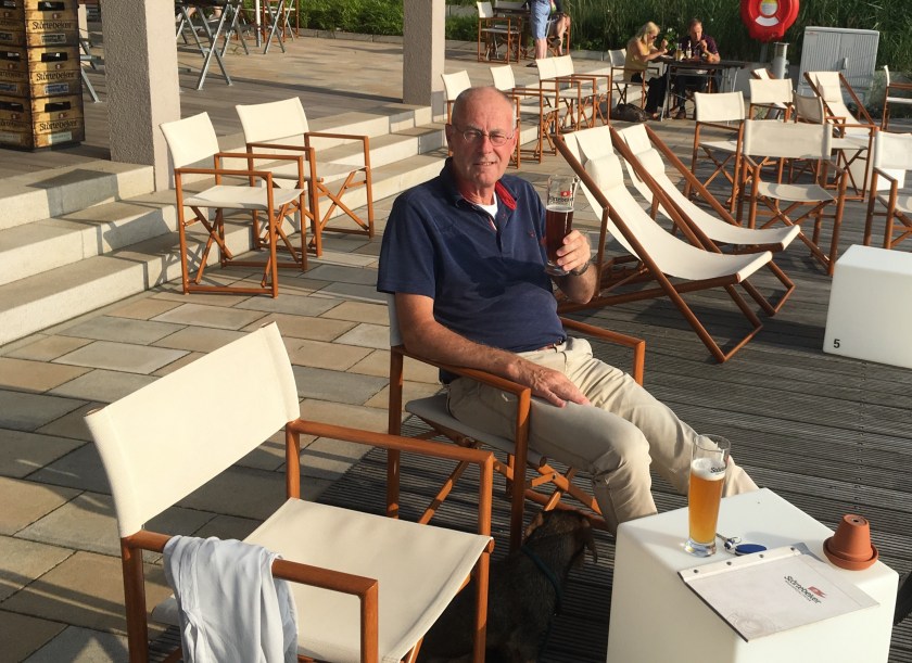 Bij de kranen op de steigers staan borden dat het water geen drinkwater is. Nu is dat vaak een waarschuwing om de legionellabacterie geen kans te geven in je drinkwatertank een legioen te vormen. Als echte Hollander stoor ik me daar niet aan en laat het water, verspillend, een tijdje doorlopen buiten de boot tot het koud wordt. Die legionellabacterie heeft een pest aan koude. Werd ik nou bijna voor mijn zonde gestraft. Het water uit de kraan met het bordje ‘Kein Trinkwasser’ blijkt inderdaad geen drinkwater te zijn. Het is volgens een oudere man op de steiger, naar eigen zeggen de ex-havenmeester van deze haven, water uit de plomp, uit de Eems, om de boten af te spuiten van het vieze Eemswater. Eemswater van verderop, denk ik, want hier lijkt het alleen wat modderig. De ex-havenmeester ziet er zelf wat morsig uit, zijn kale schedel is bedekt met pigmentvlekken, het gestreepte hemd met opgerolde mouwen hangt scheef in zijn broek. Hij beweerde de ‘betere havenmeester’ te zijn geweest. Hij wist de nodige verwarring te stichten door aan een nieuwkomer een totaal ander advies te geven over de te nemen ligplaats dan de echte havenmeester. Die twee zullen elkaar wel niet erg liggen. Het hemd van de echte havenmeester hing ook enigszins buitenboord. Uit jaloezie, om te pesten? Maar goed, ik ben dus wel ontsnapt aan het per ongeluk vullen van onze drinkwatertank met modderig Eemswater. En dat dankzij luisteren naar de ‘betere havenmeester’.