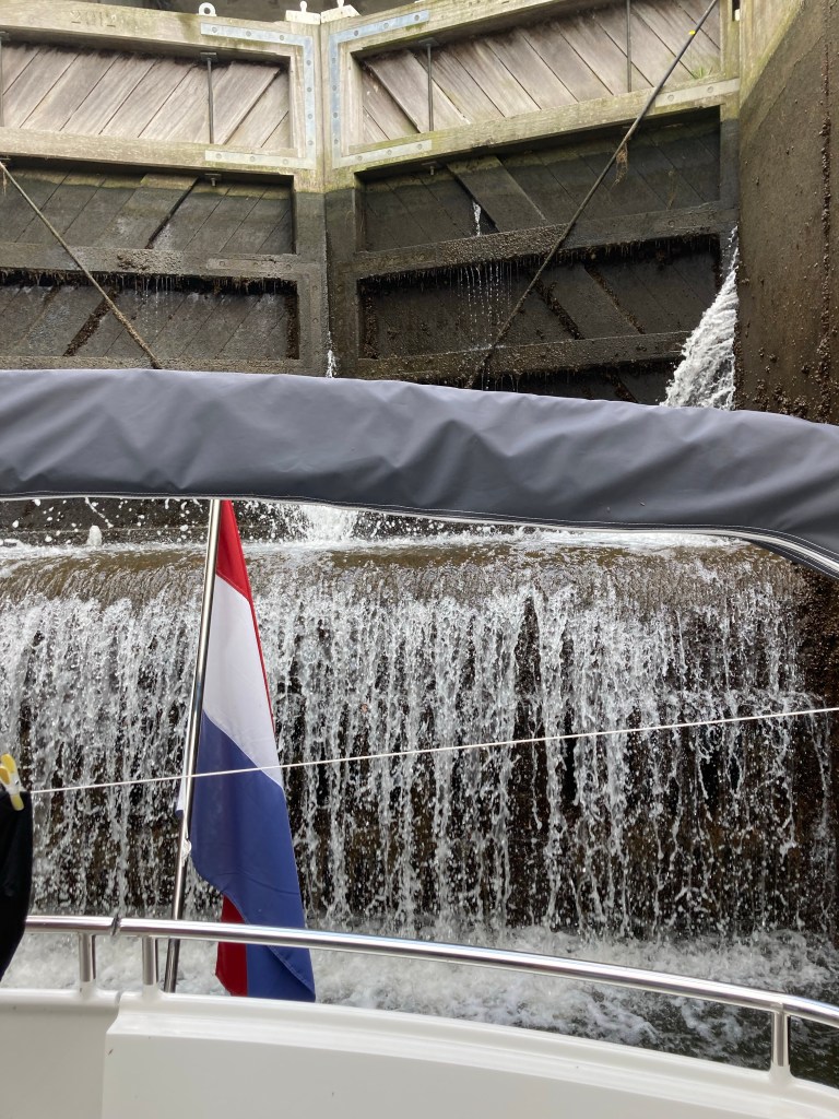 Dachten we een vaartocht door Zuid Nederland te maken en waren we inmiddels al een aardig eind in die richting, wordt dat ons door de gebeurtenissen in Limburg ernstig afgeraden, nee, nu uitdrukkelijk verboden. Terecht! Het is een vreselijke ramp die zich daar langs de Maas en de Rijn voltrekt. Vandaag hadden we gedacht naar de Lek te varen, maar dat wordt nu ook afgeraden. Hoe ver het water zal stijgen is nog niet bekend, maar als het stijgt lig je in de jachthaven voordat je het weet met je schip op de steiger in plaats van aan de steiger. Een telefoontje naar de havenmeester van Culemborg was genoeg om dit plan te laten varen. Hier achter de sluis in Nieuwegein zijn we denk ik veilig. Steeds meer besef ik dat vanzelfsprekendheid en maakbaarheid, begrippen zijn die door de realiteit ingehaald worden. Is het niet een virus, dat de maatschappij overhoop gooit, is het wel een weersgesteldheid die ironisch gezien pas in de jaren 50 van deze eeuw verwacht werd en die nu tot een watersnood leidt.