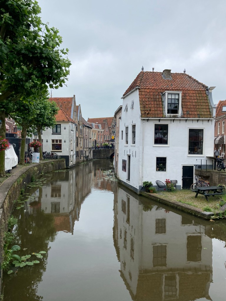 De Hollandse IJssel die we eergisteren van Gouda naar IJsselstein hebben bevaren, is een aparte belevenis. Op sommige plekken heel smal, maar vooral erg afwisselend qua landschap. Erg in trek bij charterboten, die zwaar bepantserd met zwarte ballen en stootlijsten, je zwabberend de kant in drukken,’ botsbootje varen’, de verzekering betaalt. Bovendien varen die gastschippers categorisch te hard. In Oudewater maakten we een stop van 2 uur. Een bezoek van het fraaie stadje is de moeite waard. De vele oude gevels ademen een Zuidelijke Nederlanden sfeer uit. Hoge ramen zoals je die ook ziet in de oude panden van Antwerpen en Brugge. De grote trekpleister is de Heksenwaag, waar we niet in konden omdat het vol was, maar waar ik ook geen zin in had, vanwege het ‘toeristisch moeten gezien hebben’. Te licht bevonden en dan als heks verbrand worden? Wie weegt er, en hoe weet je of iemand een normaal gewicht heeft? Volgens mij waren die rechters geen rechters, maar valse sujetten die heulden met het volk dat een zondebok zocht voor de hun overkomen rampspoed.