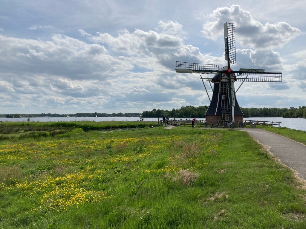Het tochtje vanaf Groningen naar Assen planden we, naar het bleek, een dag te vroeg. Op zondag draaien de bruggen in de stad gewoon, maar niet in de provincie Drenthe. De brêgewippers wippen niet, dan hebben ze gewoon vrij. Pas vanaf 1 juni wordt de zondagsrust voor de zomer opgeschort. Dus veel verder dan tot de eerste brug in Drenthe kwamen we niet. Het bleek niet erg. Op de wandeling vanaf het kanaal naar het westelijk gelegen Paterswoldse Meer was kwamen we bij een stuk water waar we ooit als studentjes met een gehuurde Vaurien de plas verkenden.
