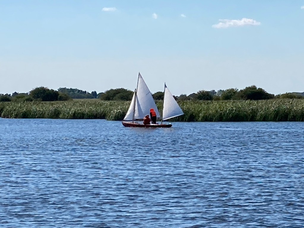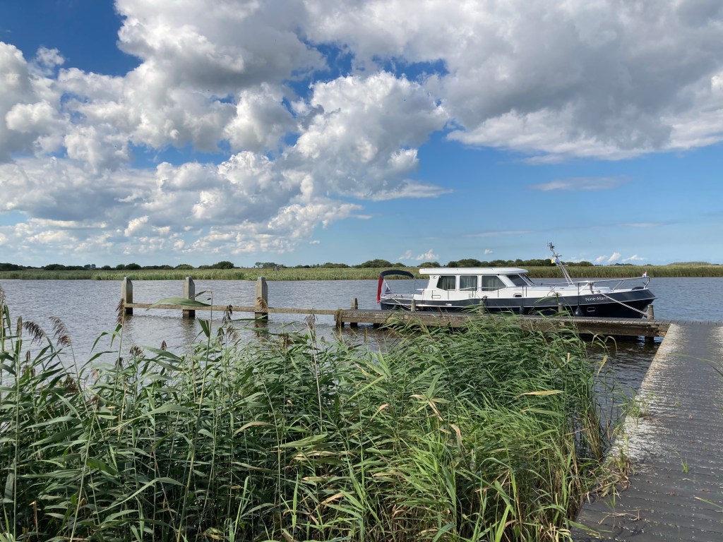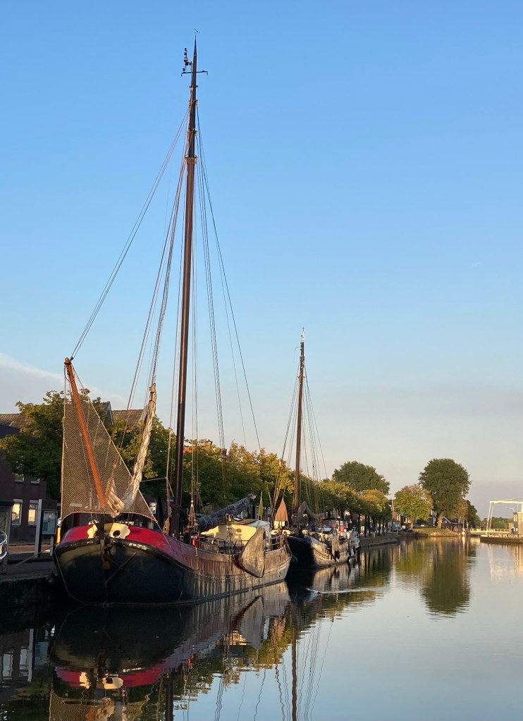 Dus…. We liggen uiterst comfortabel op een prachtige plek vlak bij het Lauwersmeer aan een kleine steiger, hogerwal, beschut tegen de oostenwind. Om ons heen boerenzwaluwen, een enkele zwaan en een paar Sternen die traag wiekend op de wind af een toe een duik in het water maken om een visje te verschalken. Gisteren zag Nienke een ijsvogel vlak bij ons schip die vanaf een paal naar een visje dook en hem op een steiger doodde door hem met zijn kop tegen de planken te slaan. Met de vis in zijn snavel was hij weg, zijn naam, de ‘blauwe flits’, eer bewijzend. Ons plekje aan het Dokkumerdiep bood een prachtig uitzicht over het landschap rond het Lauwersmeer en nodigde uit tot een wandeling richting een uitzichttoren van Corten-staal in aanbouw. Een keur aan schepen in soorten en maten schoof de hele dag aan ons voorbij. Op weg naar ons plekje zagen we gisteren een kleine zeilboot onder voltuig met ballonfok voor de wind vanuit Zoutkamp aan komen varen. Ze voeren recht op het eiland af, waar wij met ons schip net achter vandaan kwamen. Er moest van koers worden veranderd, rechtdoor varen was geen optie. Slingerend in de vlagen was het niet duidelijk of ze ons of het eiland tot doelwit hadden gekozen. Wij kozen ervoor om hen, zoals een motorboot betaamd, de ruimte te geven. Na ons nauwelijks te hebben ontweken, besloot de bemanning, voortrazend op de achterlijke wind, om het eiland toch maar niet als doelwit te verkiezen. Gijpen was de enige optie en dat deden ze met verve, ze sloegen bijna om. Één van de twee stoere mannen van middelbare leeftijd, sloeg overboord maar wist zich nog net vast te houden bij het roer van het schip, dat zich weer had opgericht en verder voer. We zagen hem weer aan boord klimmen, waarna ze met een bakstag-wind over de andere boeg, slingerend in de harde vlagerige wind, verder voeren. De zeilvoering aanpassen in de zin van een rif zetten en een gewone fok in plaats van de ballonfok, kwam blijkbaar niet in hun op.