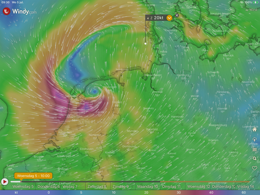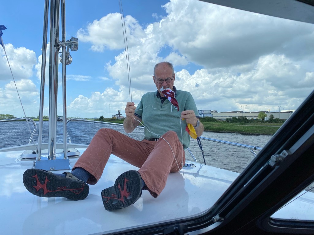 Het is altijd weer leuk om te zien hoe mensen hun schip aan de kade leggen. Zeker als dat gebeurt vlak voor je raam terwijl je zelf meent onbespied te zijn. De Engelsman en zijn vrouw hadden er moeite mee. Hun 14 meter lange wit-groen geschilderde motorboot met opbouw, was voorzien van een vaal verkleurde Engels vlag. Hij, met een fraai getrimde witgrijze baard en zij met sliertig grijs haar dat als gebundelde palingen over haar schouders hing. Terwijl zij zwaar trekkend aan de landvast probeerde de kop van het schip bij de wal te houden, rende de man beurtelings naar de stuurstand en de hek van het schip om 2 dingen tegelijk te doen; De boegschroef laten razen en achter proberen een dubbele lijn te bevestigen die veel te ver van het schip onder de sier-reling van de kade was doorgehaald. Dat een en ander lastig was bleek duidelijk uit zijn intentie het perfect te doen. Steeds ontevreden over het resultaat, en zijn vrouw toeroepend dat het anders moest, bleef het schip minutenlang heen en weer schuiven langs de kade voor ons raam. Een stukje naar voren en een stukje naar achteren, weer een stukje verder en dan toch maar weer naar achteren. De voorste lijn te kort, de achterlijn te lang, waardoor het schip met haar kont van de kade afweek. Toen dat zo een kwartiertje doorging, kon ik het niet laten om als schipper aan de wal mijn neus te laten zien en een belerende opmerking te plaatsen. Mijn ironisch bedoelde opmerking dat hij ‘rather meticulous’ (nogal overmatig precies) was, werd ingetogen aanvaard met de mededeling dat hij voldoende ruimte wilde overlaten voor een ander schip dat misschien achter hun schip wilde afmeren. Toen hij het achterschip dat nogal afweek van de kade met een extra dubbele lijn verticaal en veel te kort aan de kade bevestigde, vroeg ik wijsneuzig of dat wel verstandig was. ‘Het gebeurt wel dat snel langsvarende schepen golven produceren waarop landvasten met weinig rek niet prettig reageren’. Hij was het met me eens en ging direct de spring met een ‘bigger angle’ bevestigen, waardoor de door hem bevestigde vier-dubbelde uitvoering ervan nog eens de nodige tijd en inspanningen vergde. Zijn vrouw, die nog steeds met een landvast voor bij de boeg stond, bezag een en ander met bewonderenswaardige lijdzaamheid. Toen hij vond dat het achterschip naar behoren, met dubbele en vierdubbele lijnen vast zat, was er eindelijk oog voor zijn vrouw, zijn boegschroef in den vleze op de wal. De vette haar-palingen over haar schouders leken nog dikker door de inspanning die ze moest leveren. Het is na zeker een half uur goed gekomen, het schip lag ‘te plak’ en kan niet voor- en niet achteruit. Laat de storm maar komen.