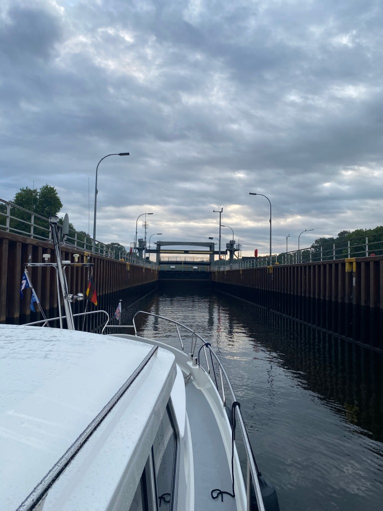 We zijn een uur later, en de Engelsen zijn weer weg. Ze zijn nu bezig om aan de overkant af te meren, de aanlegprocedure wordt herhaald. Zo te zien sneller dan daarnet. Misschien was de ervaring van een uur geleden ‘too embarrassing’ of is het omdat de supermarkt dichterbij is? Ik zal het niet weten…..