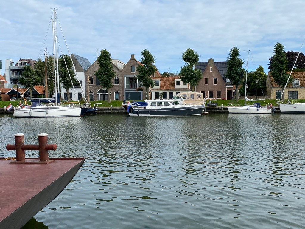 Hoe anders was ons laatste tochtje met de Nine Marit. Van Stavoren naar Medemblik genoten we van een zwak windje vanuit het zuidwesten op het IJsselmeer, waar we allebei haast meditatief de ruimte en het wijde water op ons lieten inwerken. Een mooie oversteek en een prettige ontvangst in de Oosterhaven waar we langszij een Grouwstervlet konden afmeren. De volgende morgen zou de wind eveneens zwak uit het zuidwesten waaien. Daar gingen we vanuit. Pas in de avond zou de wind toenemen. Vroeg vertrekken was onze conclusie. Toen we de haven verlieten en dezelfde koers in omgekeerde richting aanhielden bleek er wat mis te zijn. Meer wind dan de dag ervoor, en niet uit het zuidwesten maar uit het zuidoosten. Met een koers naar het noordoosten betekent dat voor Nine Marit rollen op de inkomende golven van opzij. Zo mooi op één oor met de Crabber mist onze motorboot een steuntje van een zeil. De truck is, zoals de meeste motorboot-vaarders wel weten, schuin in de golven of schuin vanaf de golven varen. Het was een hobbelige schommel-tocht, niet aangenaam en zeker niet geschikt om meditatief naar buiten te staren. Van koers veranderen met een hoek van 90 graden betekent goed vasthouden en het ritme van de golven volgen om op een rustig moment zo snel mogelijk naar de gewenste koers te draaien. Klinkt misschien wel wat dramatisch, is het niet, alleen wat ongemakkelijk. Ons schip valt niet om en de bloemen en de olielamp in de kajuit hadden we vrij snel verhuisd naar de gootsteen in de keuken. Toen we na deze kruis-tocht de sluis van Stavoren binnen voeren, was het leed snel vergeten. De korte golfslag op het IJsselmeer is niet te vergelijken met de golfslag op de Oostzee. De zee is daar veel dieper en levert daardoor langere golven. De bewegingen van het schip gaan wat geleidelijker en zijn daarom aangenamer.