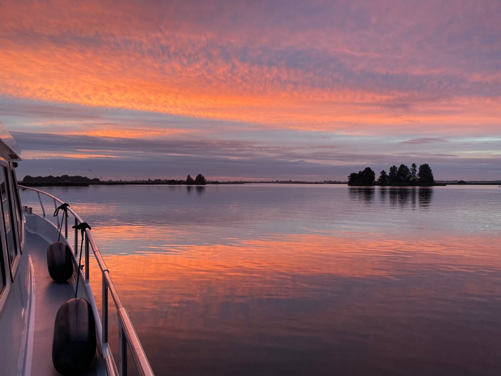 Een front met regen trekt vannacht en morgenochtend over. Het is ineens warm en klam. Zondag willen we weer thuis zijn. Er zijn nog sociale wensen te vervullen….