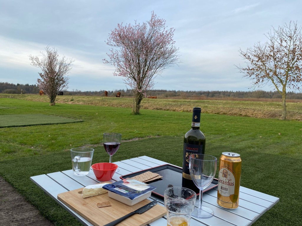 Onderweg naar de Camperplaats in Oude Willem, een gehucht nabij Diever en Appelscha, rijdt Nienke voor het eerst achter het stuur van de camper over een aantal smalle binnenwegen. Het is wennen met de camper die 3-4 keer groter is dan onze Yaris. Terwijl ik naast haar zittend, de naar het midden van de weg neigende bomen en lantarenpalen, in stilte probeer op afstand te denken, gaat alles uiteindelijk goed, niets van dat alles geraakt. Nienke stuurt zo goed als ze ook met onze motorboot deed door smalle bruggen en nauwe vaartjes. Op de plek van bestemming loodste de boerin van de camping ons naar een mooie plek, water en stroom direct naast de camper. Het zonnetje vergezelde ons bij het installeren van de nieuwe stoelen en het oude tafeltje uit de boot. Nieuwsgierige koeien leken onze bezigheden zeer interessant te vinden, en na enig staren begonnen ze vlak voor onze neuzen aan de andere kant van de greppel de lengte van het gras een knipbeurt te geven.