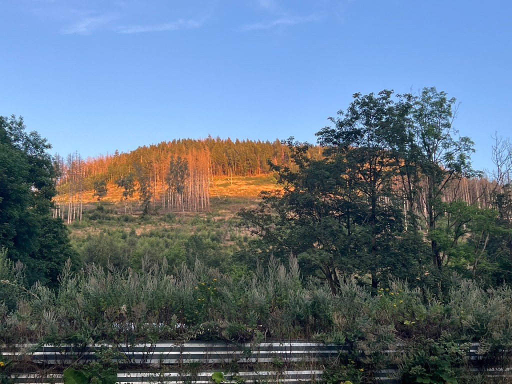 Onze camper stond op een voormalig stationsemplacement. De rails zijn weg, maar het stationsgebouw staat er nog. De uitbaters zijn nog maar kort geleden begonnen om de plek te verbeteren en aan te passen aan de wensen van de camperaar. De man spreekt een beetje Nederlands dankzij een periode werk in Nederland en legde ons uit wat er in de omgeving te beleven is. Het voormalig spoorlijntje was er ten nutte van de mijnbouw. De kaarsrechte dennenbomen op de bergflanken waren uitstekend geschikt om als stut te dienen in de mijngangen. Dat er geen naalden meer zitten aan de bomen op de hellingen is te wijten aan de vraatzucht van een kever. Volgens hem is men te laat begonnen met het beestje te bestrijden. Gelukkig zijn er veel andere boomsoorten die de kever niet lust waardoor de kaalslag wat beperkt is gebleven. Regelmatig lopen er 4 wasberen over de camperplaats, een vos komt in de avond eveneens de ronde doen om te kijken of er iets te happen valt. De grote katachtige lynxen die er voorkomen laten zich minder vaak zien.